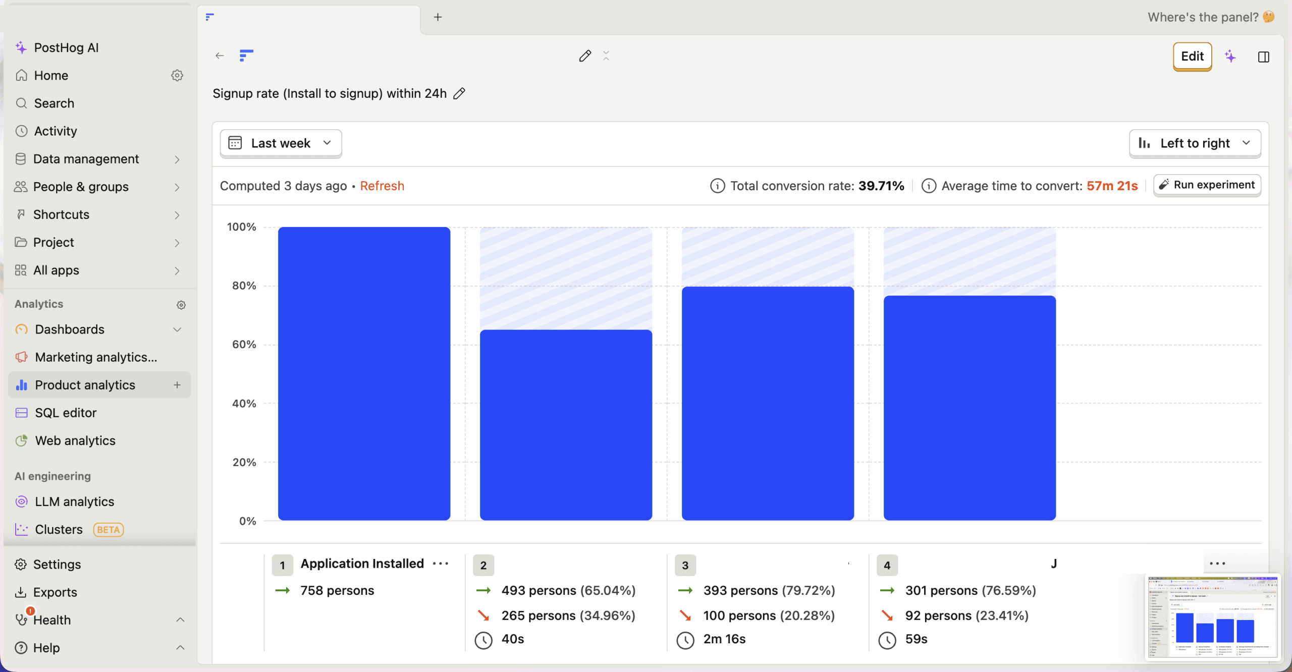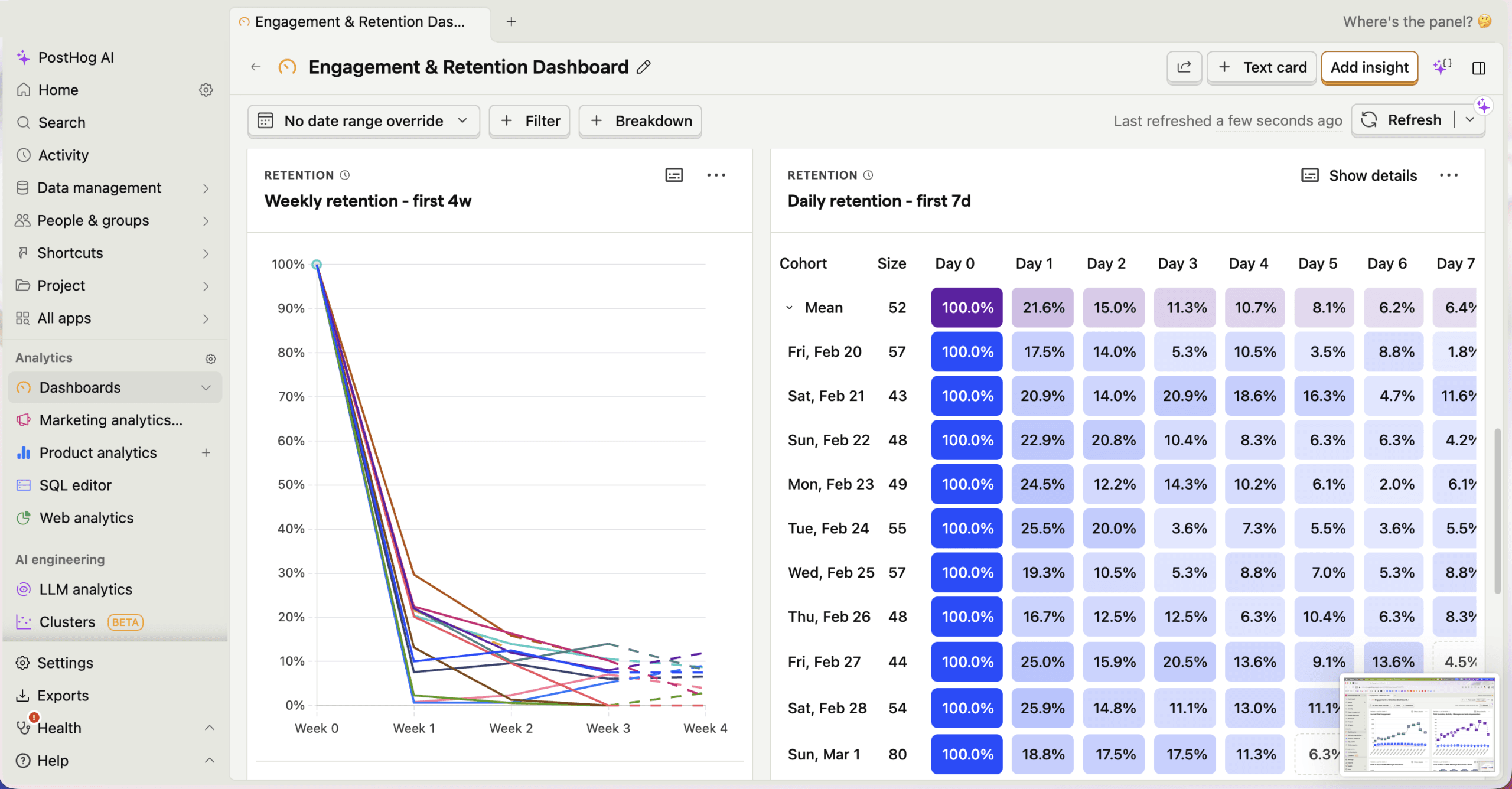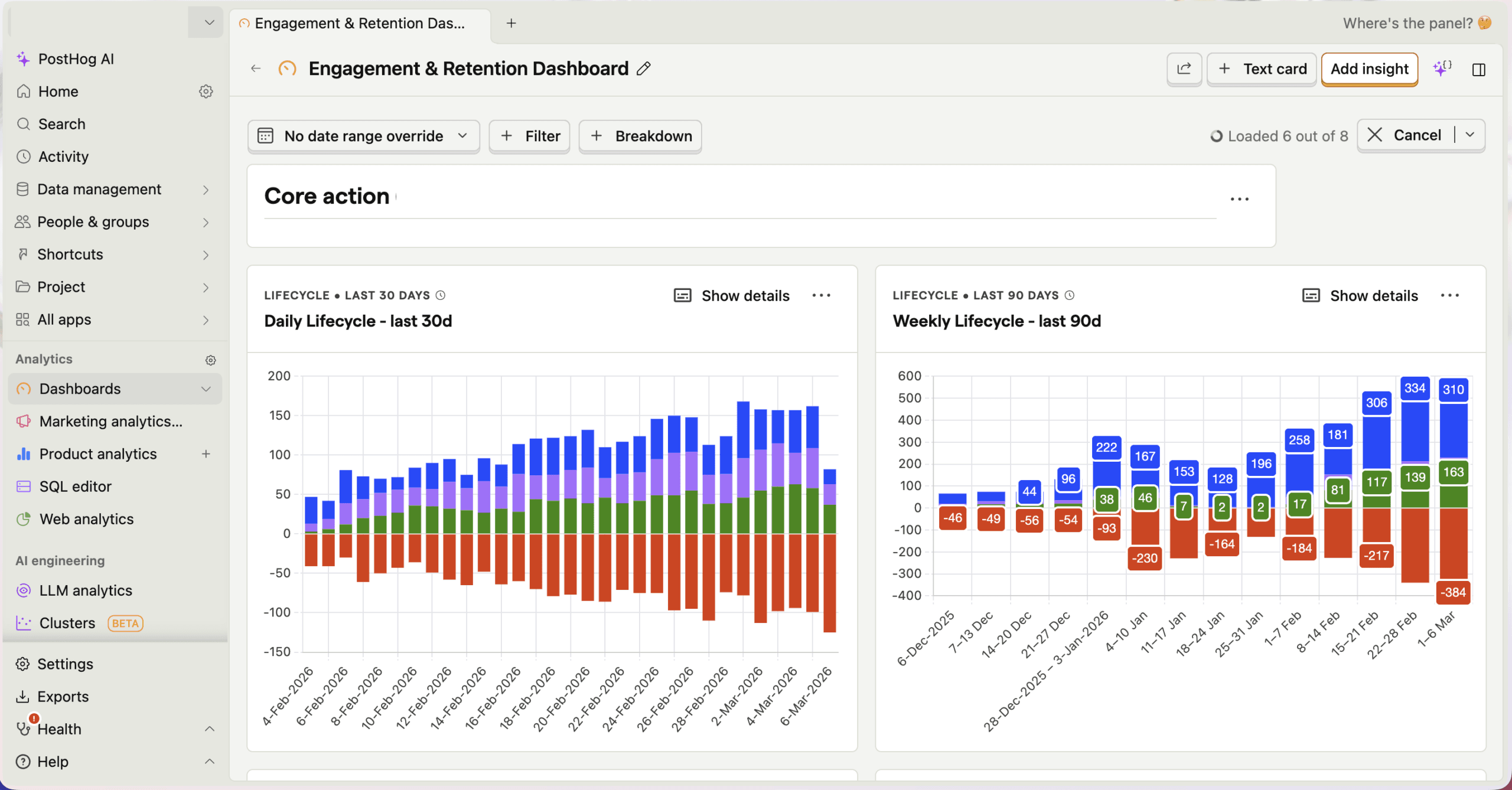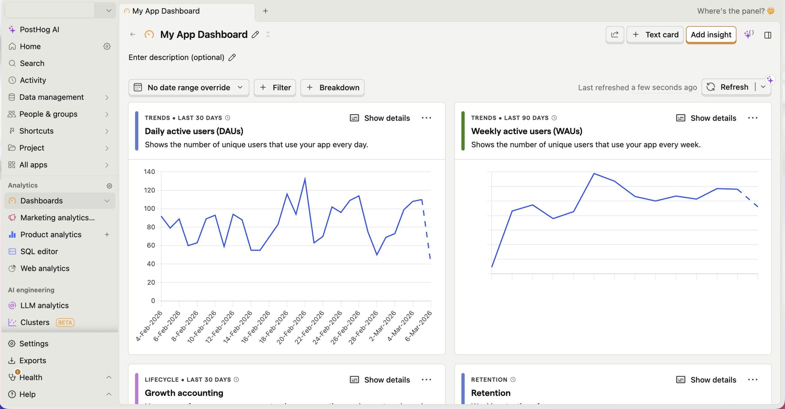 PostHog is an open-source product analytics platform that bundles event tracking, session replay, feature flags, A/B testing, surveys, error tracking, and a data warehouse into a single product. It’s built for engineering-led teams, from developers, technical PMs, and growth engineers who want full data ownership.